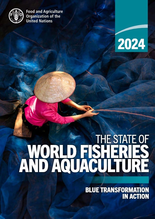 The 2024 edition of The State of World Fisheries and Aquaculture features the Blue Transformation in action, illustrated by activities and initiatives, led by FAO in collaboration with Members, partners and key stakeholders, to integrate aquatic foods into global food security and sustainability, enhance policy advocacy, scientific research and capacity building, disseminate sustainable practices and technological innovations, and support community involvement. Part 1 of this edition of The State of World Fisheries and Aquaculture benefits from significant improvements in data collection, analytical and assessment tools and methodologies to present the most up-to-date review of world fisheries and aquaculture production and utilization. Part 2 highlights the role of FAO and its partners to catalyse the transformational changes required to support aquaculture expansion and intensification, effective management of global fisheries and upgrading of aquatic value chains. Part 3 covers the high-impact challenges and opportunities of the untapped potential of utilizing whole fish and by-products to improve food security and nutrition, expounds on the role of aquatic food systems in providing critical climate, biodiversity and environmentally sound solutions, and highlights the importance of their integration into national and multilateral processes. It also presents an outlook on future trends up to 2032 based on projections. The State of World Fisheries and Aquaculture 2024 provides the most up-to-date and evidence-based information, supporting policy, scientific and technical insights on challenges, opportunities and innovations shaping the present and future of the sector, for the benefit of a wide and expanding audience of policymakers, managers, scientists, fishers, farmers, traders, civil society activists and consumers.
