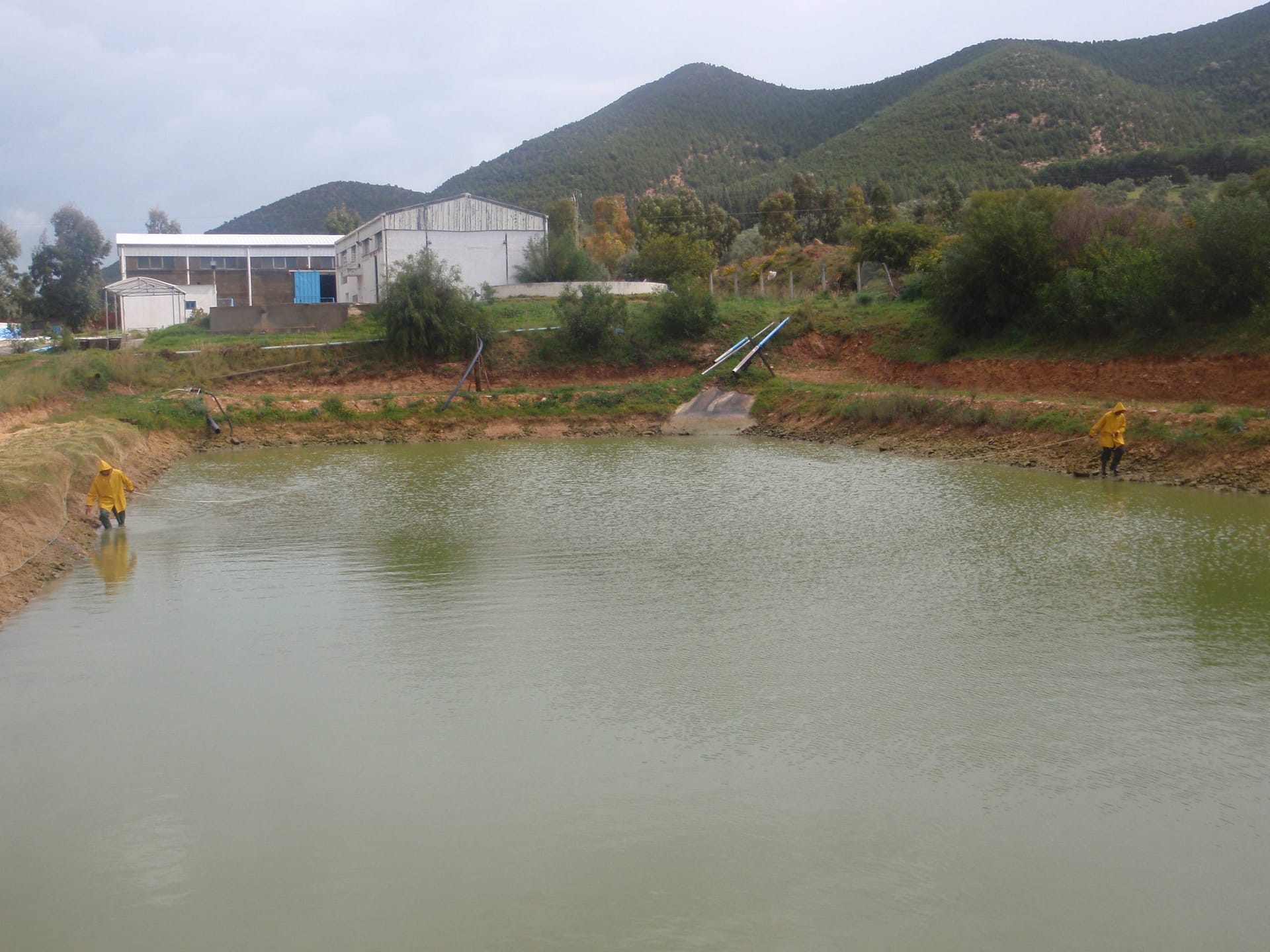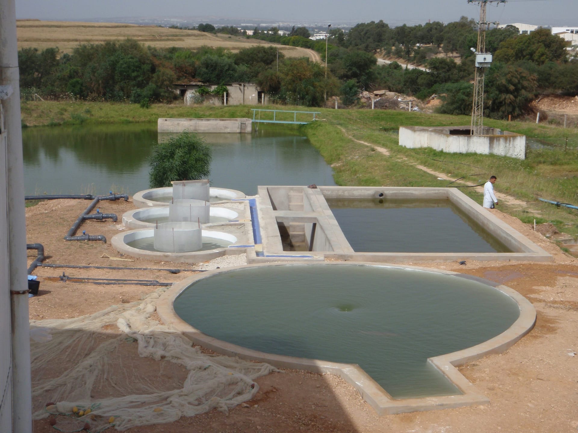 • Trois bassins en terre de 2m de profondeur moyenne, dont deux bassins de pré-grossissement chacun de 400m2 et un bassin de stockage des géniteurs de 2000m2.